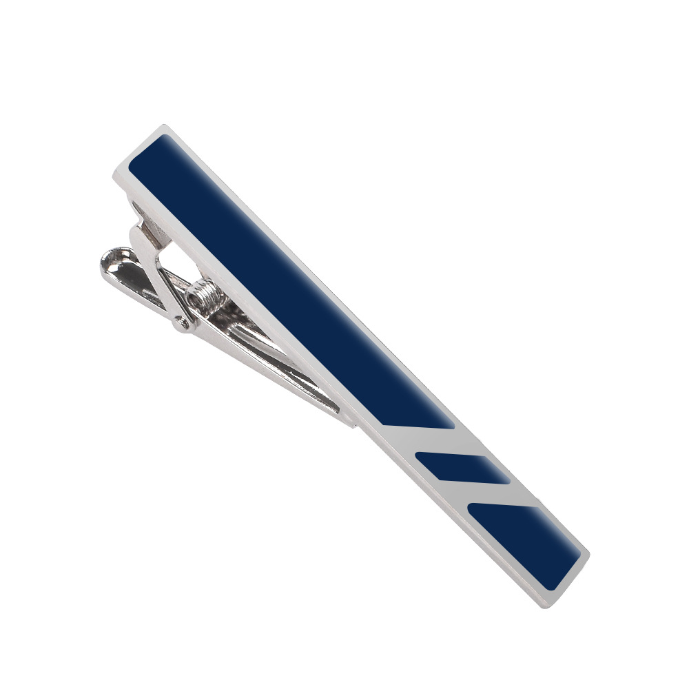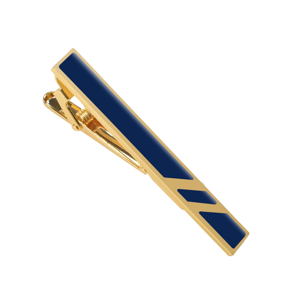 金属の美しい輝きがネクタイをしっかりと固定し、胸元に洗練された印象を与えるネクタイピンです。