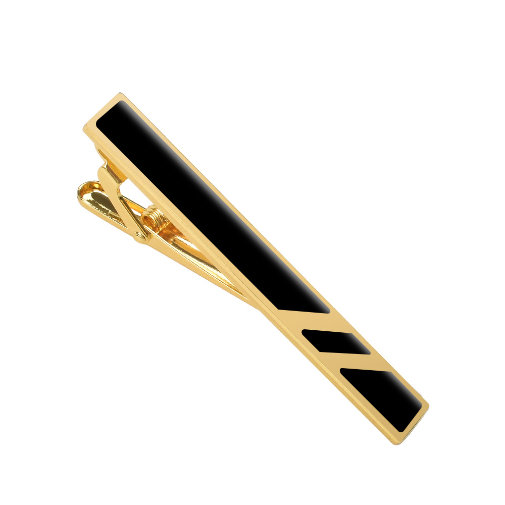 金の輝きが美しいネクタイピンは、斜めに配置された三本のストライプ模様が特徴的なデザインです。