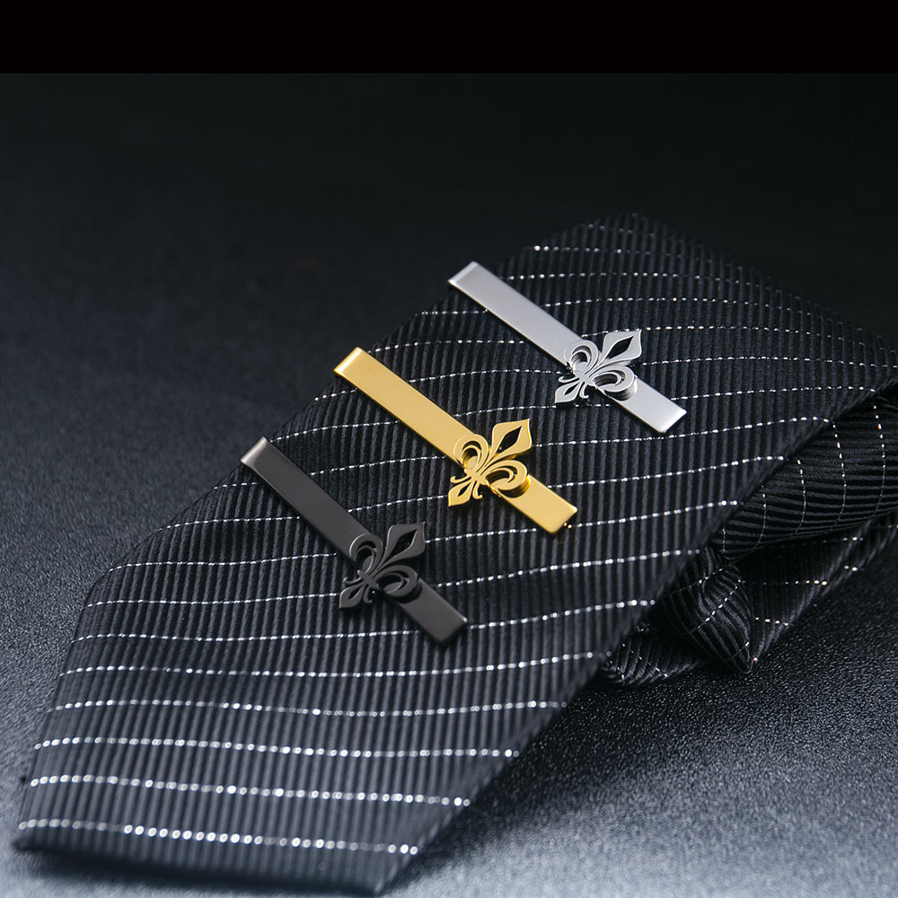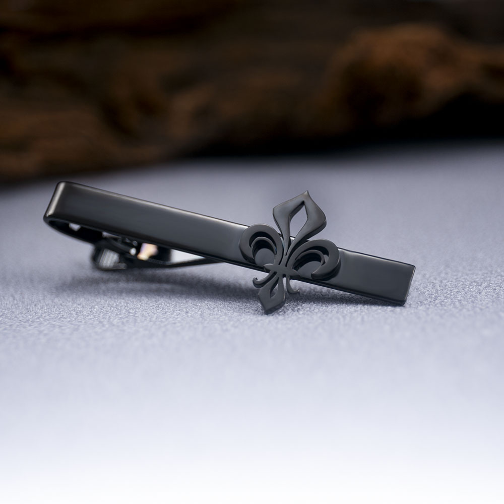 優雅な百合の紋章をあしらった金属製のネクタイピンです。