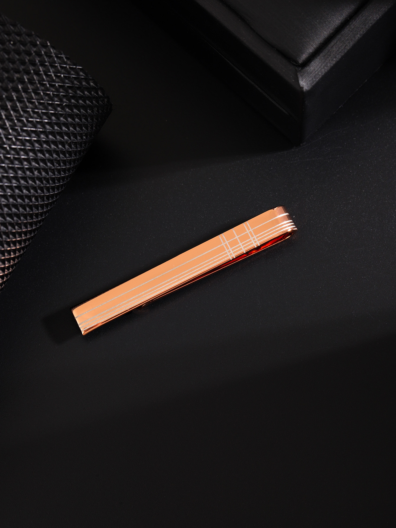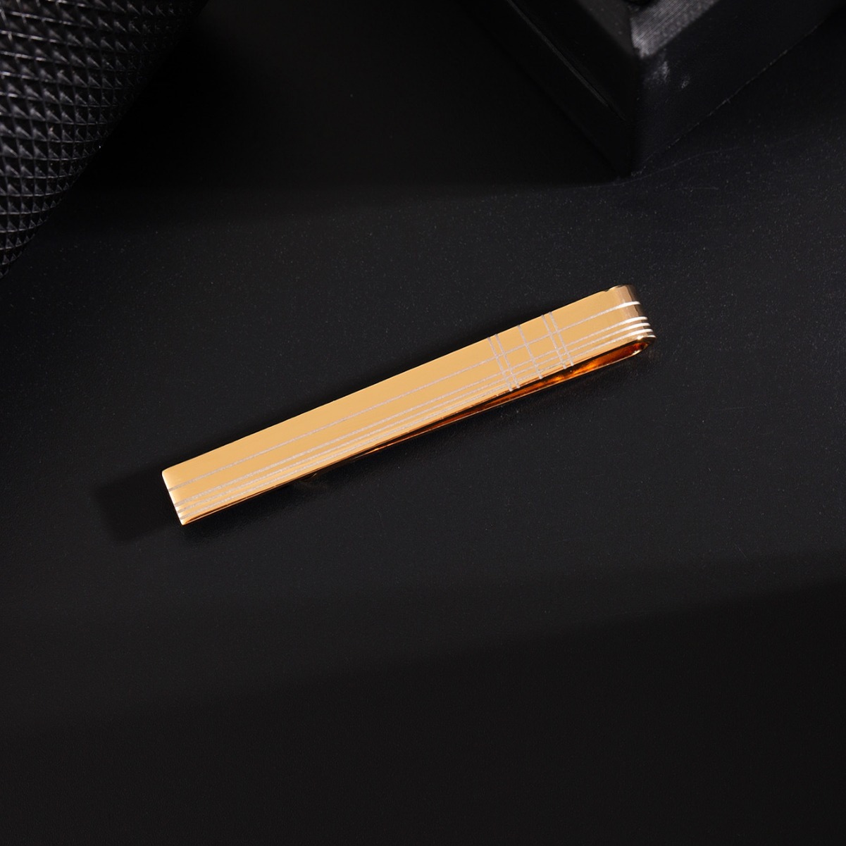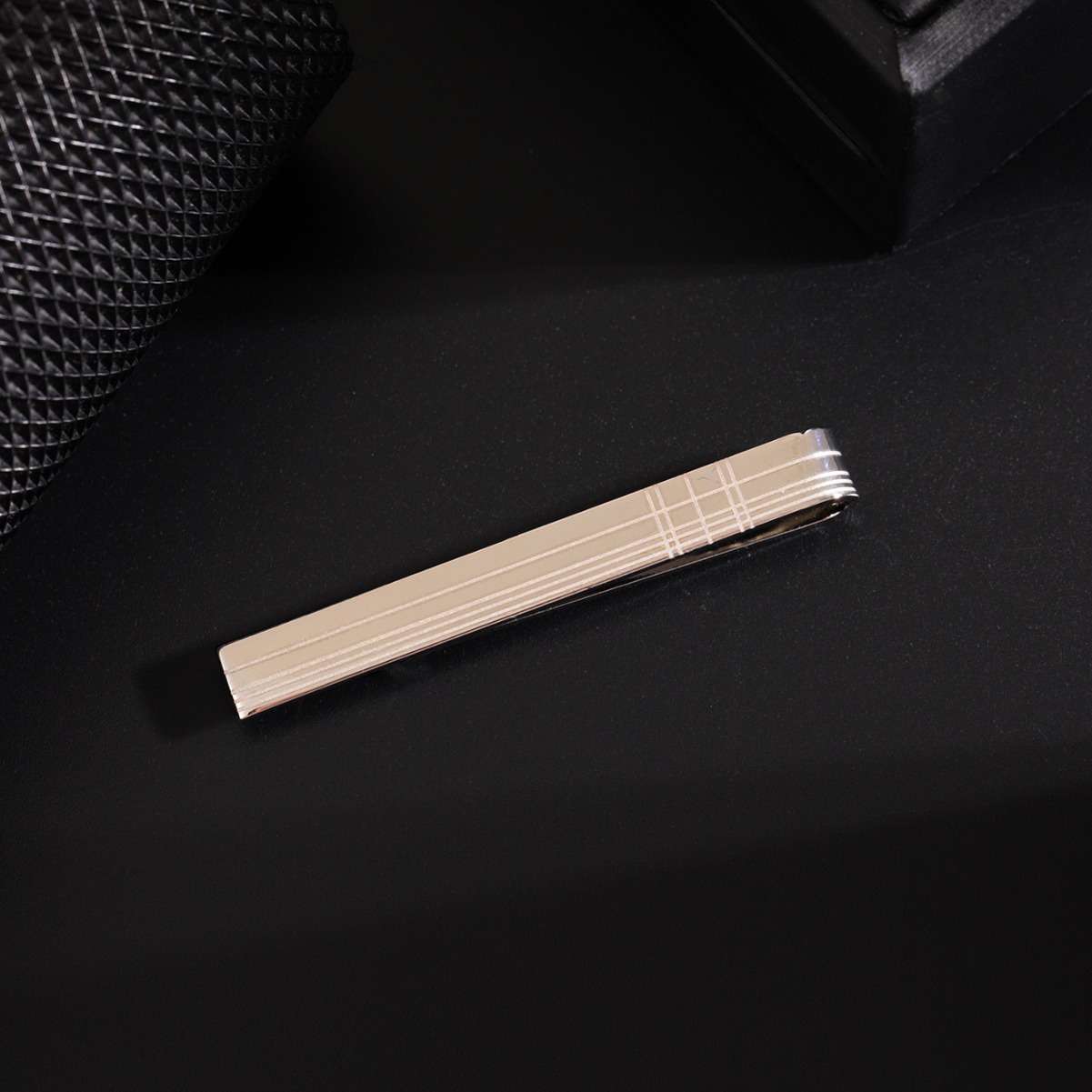 表面に格子状の繊細な線が刻まれた上品なネクタイピンです。