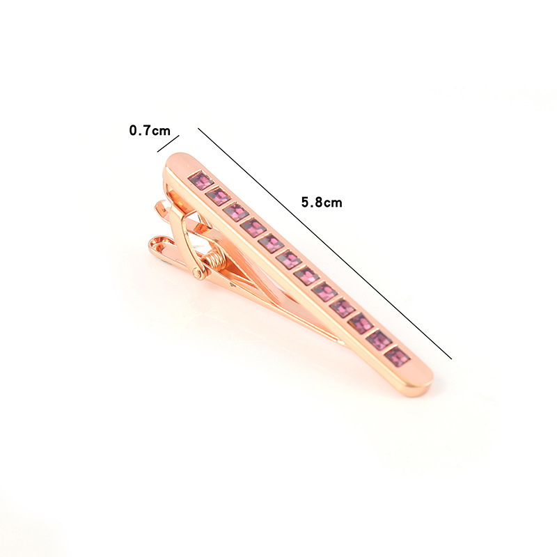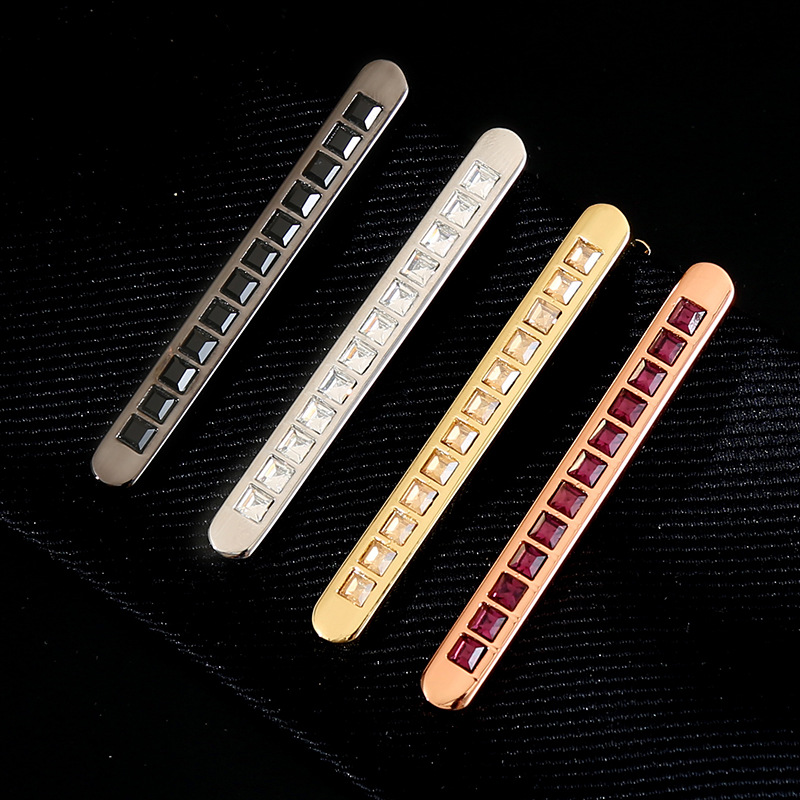 中央に並んだ輝く宝石が特徴的な金のネクタイピンです。