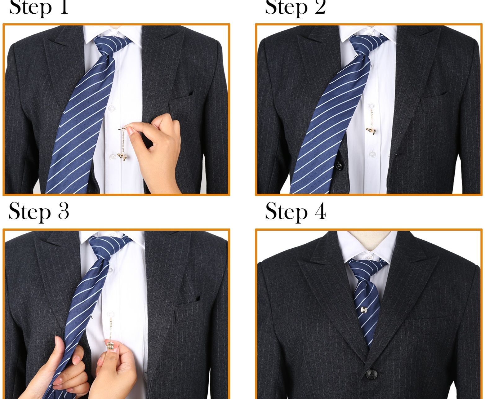 重厚感のある仕上がりで、胸元に上質な存在感をもたらすネクタイピンです。