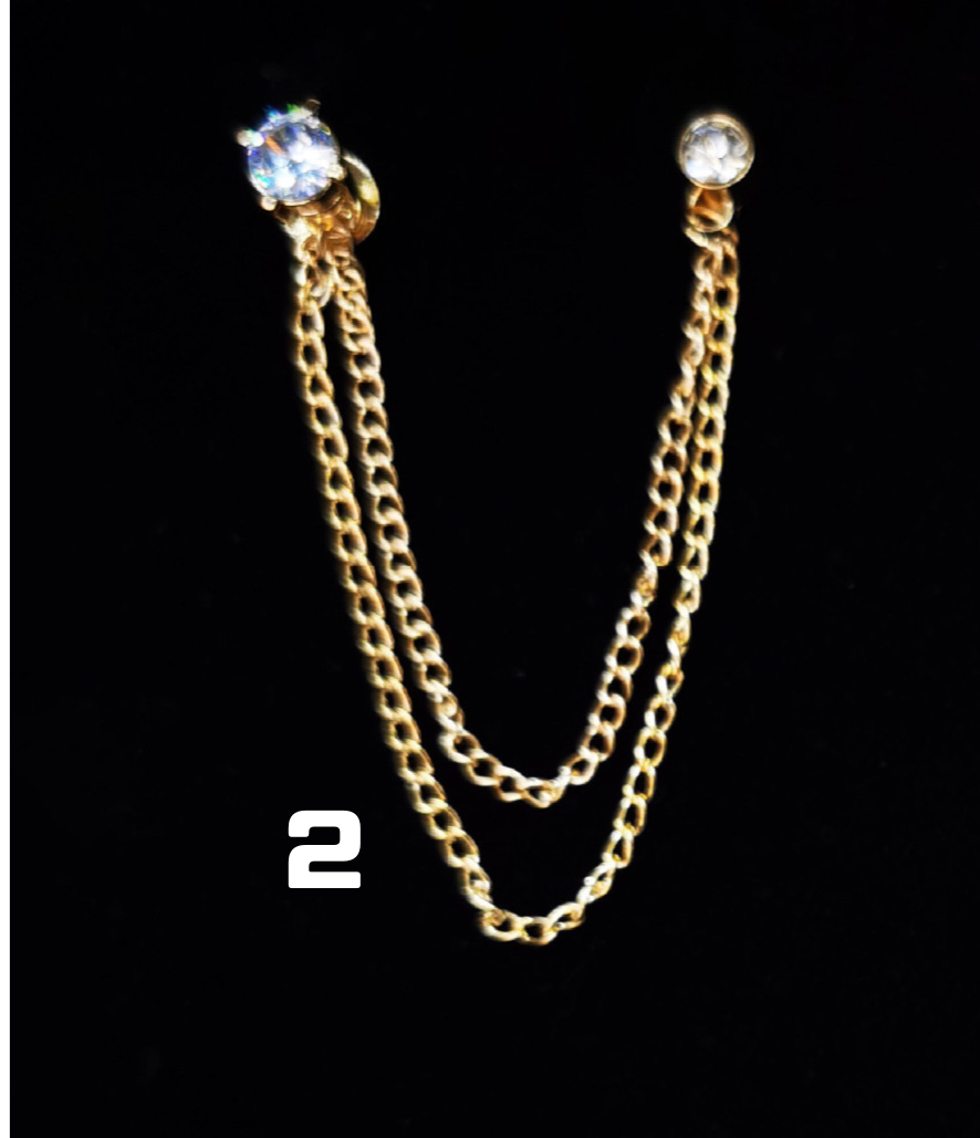 金の質感が上品な高級感を演出し、二連の鎖が胸元で優雅に揺れ動きます。