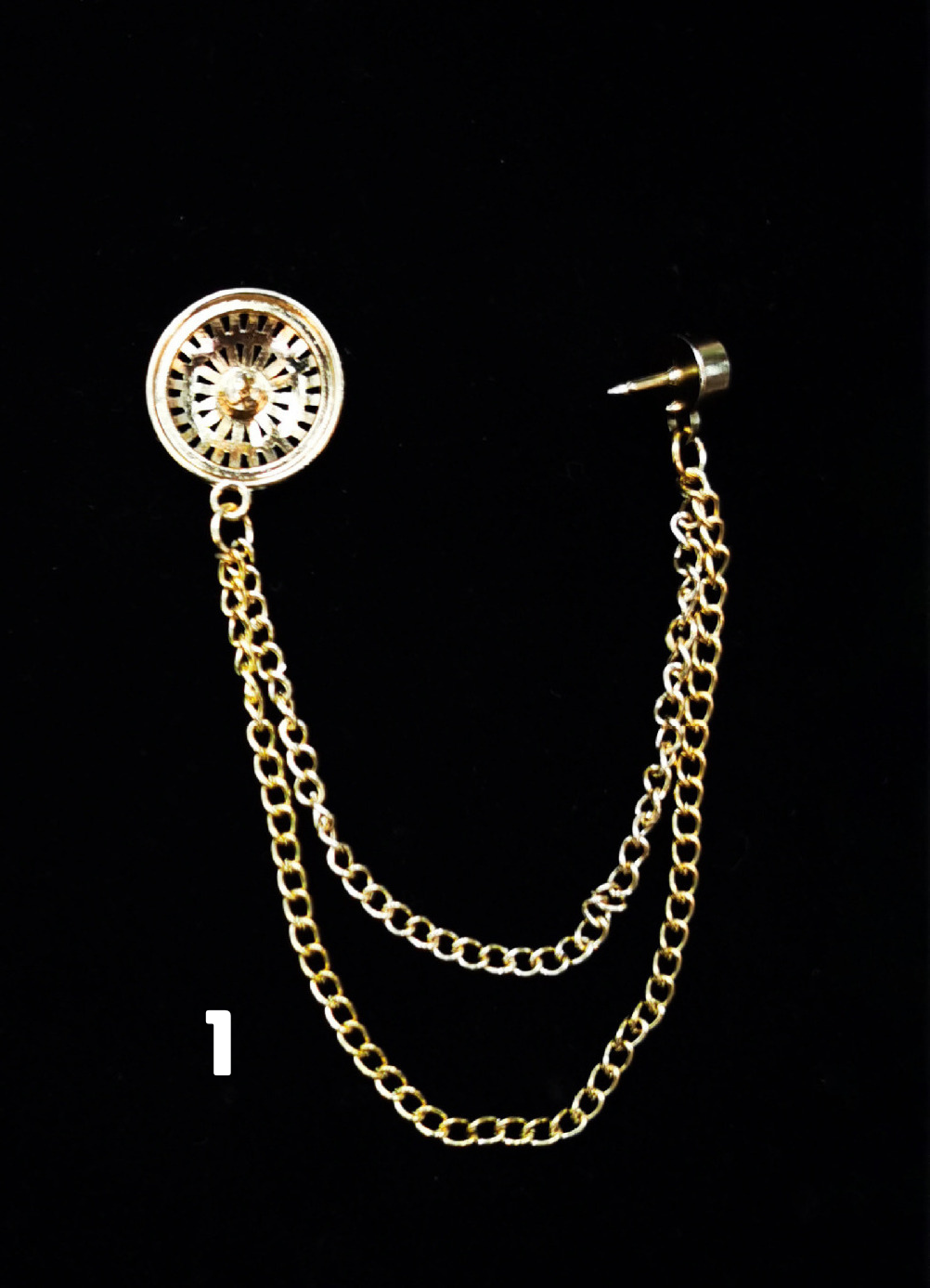 繊細な車輪模様の透かし細工と輝く宝石をあしらった華やかなネクタイピンです。