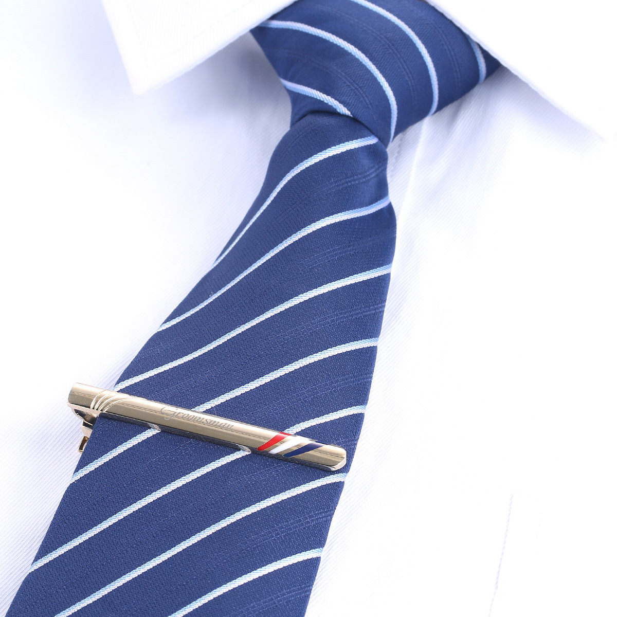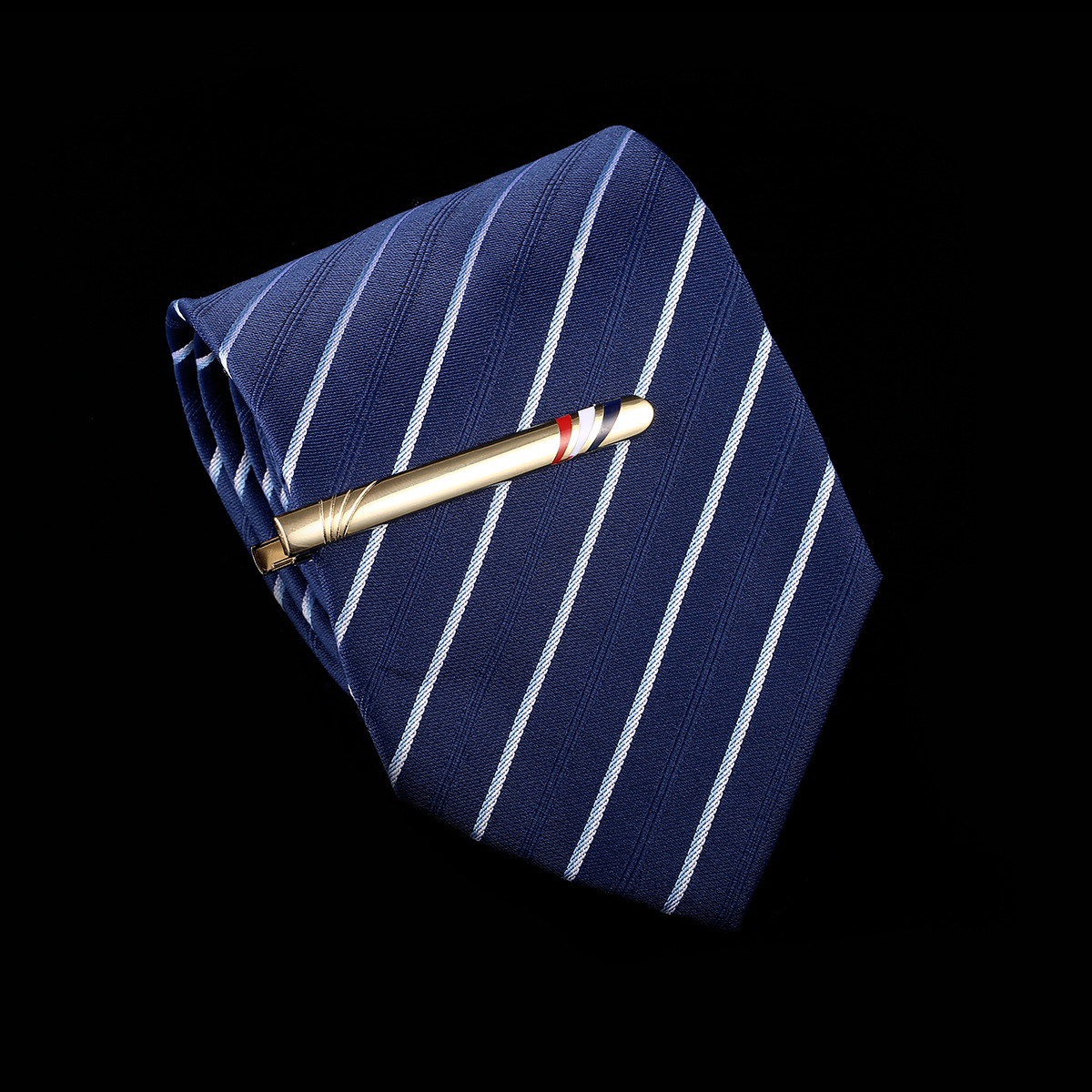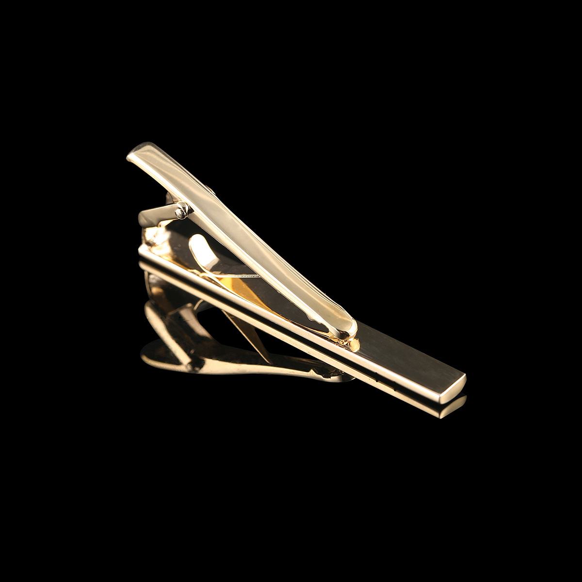金の輝きが際立つ上品なネクタイピンです。 表面には斜めに配置された三色のラインが施され、洗練されたデザインに仕上がっています。 表面には細やかな刻線装飾が入り、光沢と質感のコントラストが美しく映えます。 ビジネスシーンからフォーマルな場まで幅広く活躍し、胸元に華やかさと品格を添えます。 金ならではの重厚感と高級感を兼ね備えた、大人の装いにふさわしい逸品です。